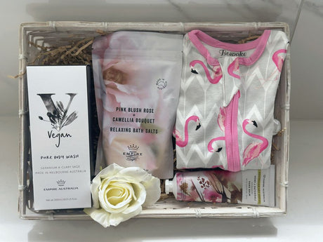 You could include a bottle of bubbly to celebrate the momentous occasion of bringing a beautiful baby into this world. Or focus on pampering the new mum and relaxing bath salts or some chocolates. Whatever you choose to add, we lovingly hand craft and ensure your gift leaves a lasting impression.