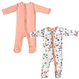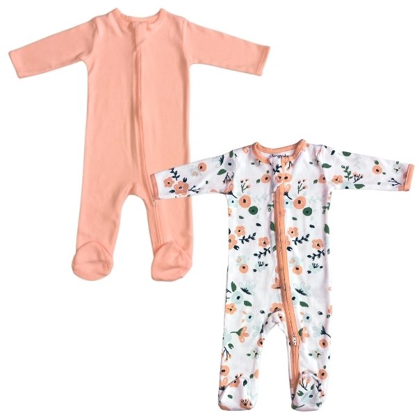This coral & floral two way zip romper 2pk are made from beautiful soft 100% cotton fabric and feature easy access zipper and enclosed feet. Your little one will look cute as can be in these adorable prints.