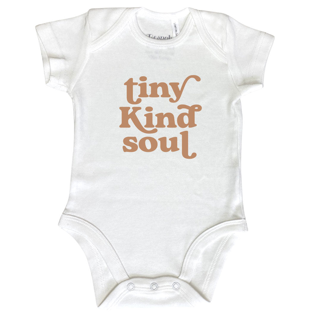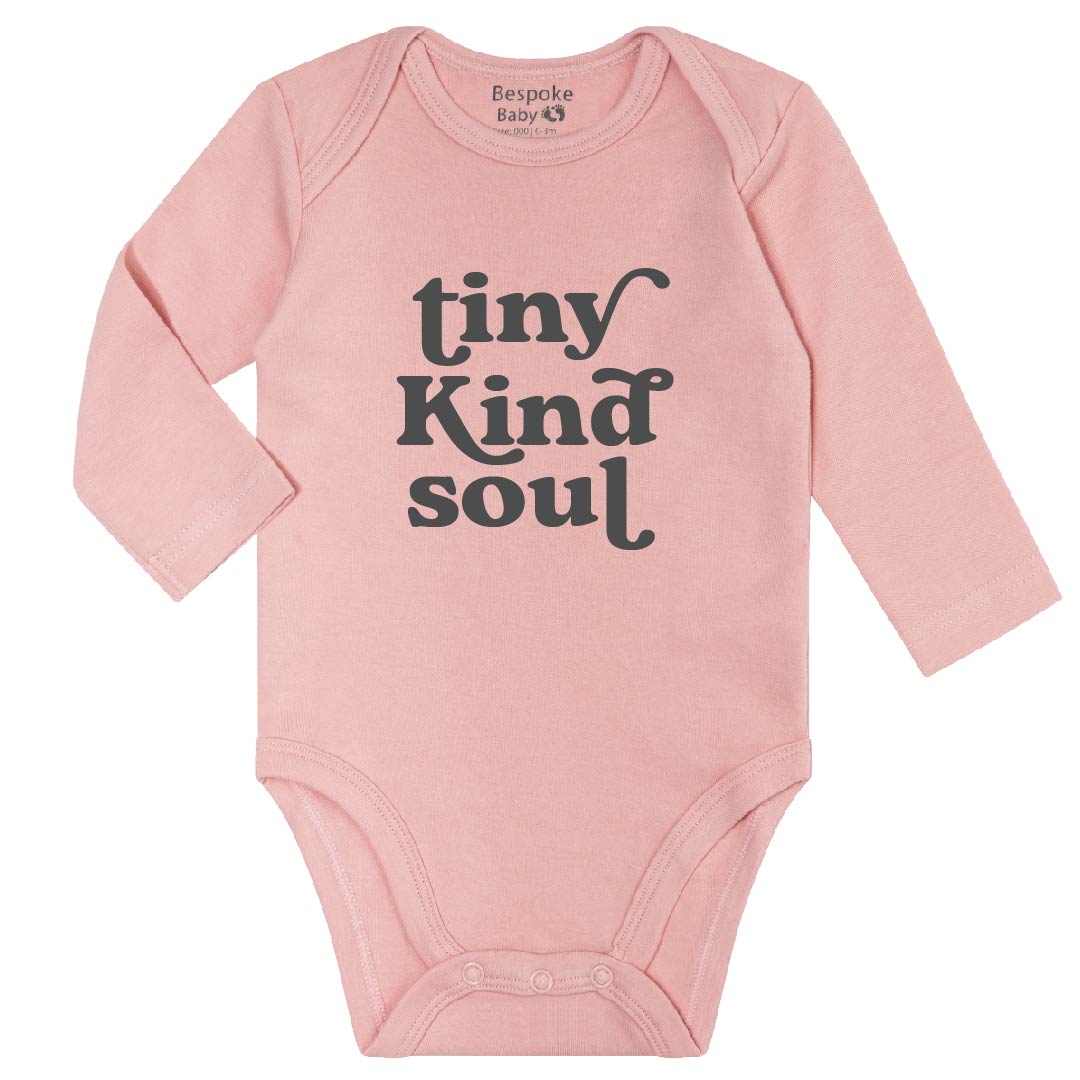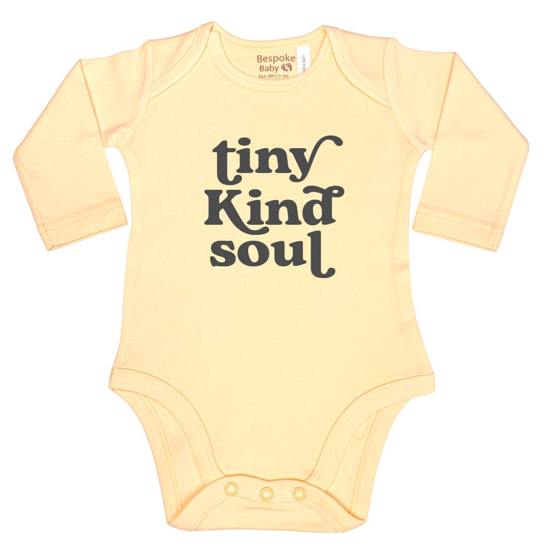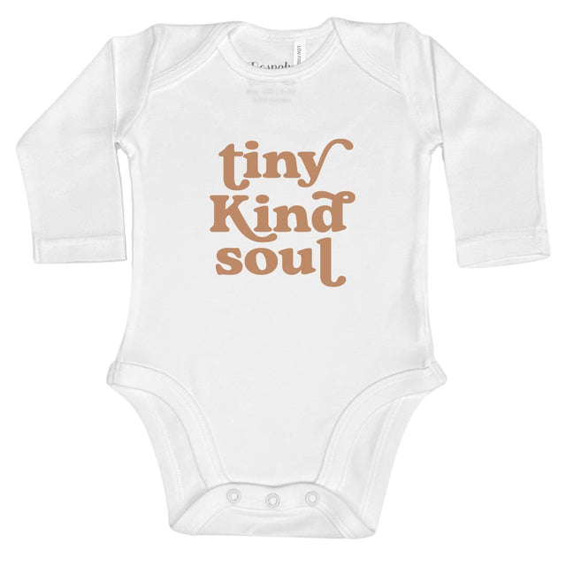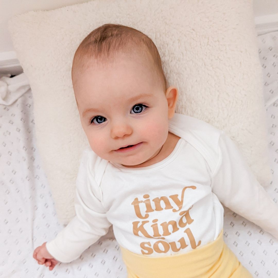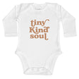 Our tiny kind soul white long sleeve baby bodysuit is proudly printed in our Sydney warehouse on our own brand of super soft 100% cotton baby onesies. A cute everyday outfit for your little one. Dress it up or down